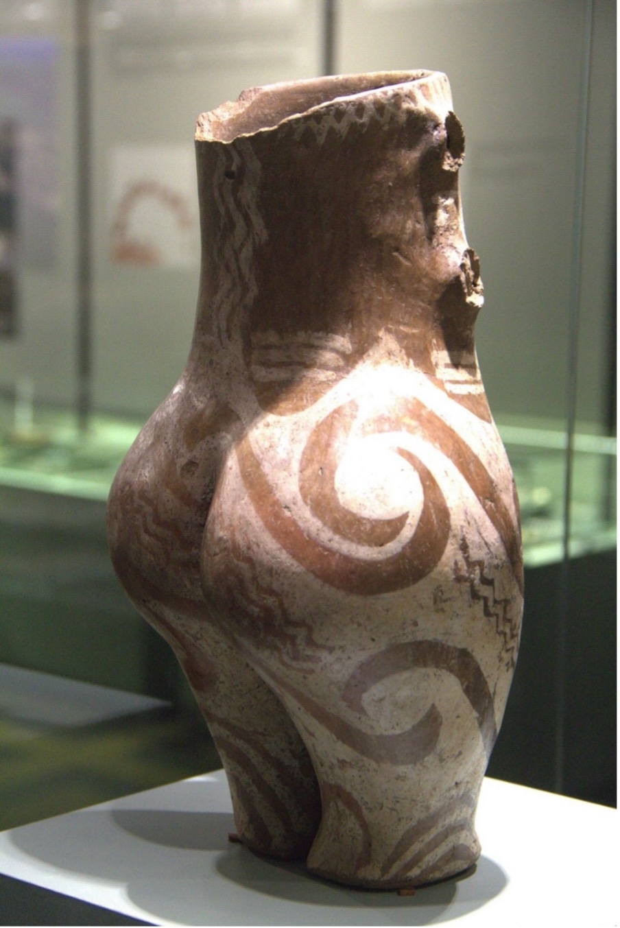 Figur keramik, k.l. 5.500 BCE, ditemukan dalam gua dekat Sofia [Museum Nasional Arkeologi, Bulgaria, gambar: GvK]. Perempuan ini bisa saja menggambarkan „dunia sebagai kuil’ (the world as sanctuary), sebagaimana dikatakan oleh Henryk Skolimowski (Skrbina 2013).