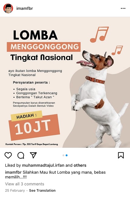 The leader of the FBR, Imam Luthfi Hakim, sounded a more cautionary tone, via Instagram, trying to put the controversy into perspective.