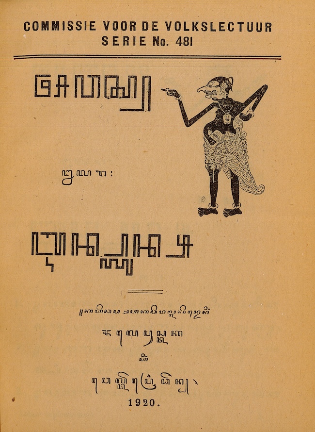 During this time, I approached professor of Javanese and Indonesian Studies and historian at the University of Michigan, Nancy Florida, to ask if she might be interested in translating the Javanese play Awas Lêlara Influwensa (Beware the Disease of Influenza). This unusual piece was written by an unknown Javanese author and published by Balai Pustaka two years after the devastating influenza pandemic of 1918. The aim was to educate Javanese subjects of the Dutch East Indies in the proper care of influenza patients and in the prevention of the spread of the disease. Written in the form of a play with characters from the wayang tradition, this small book is the inspiration for this collection.